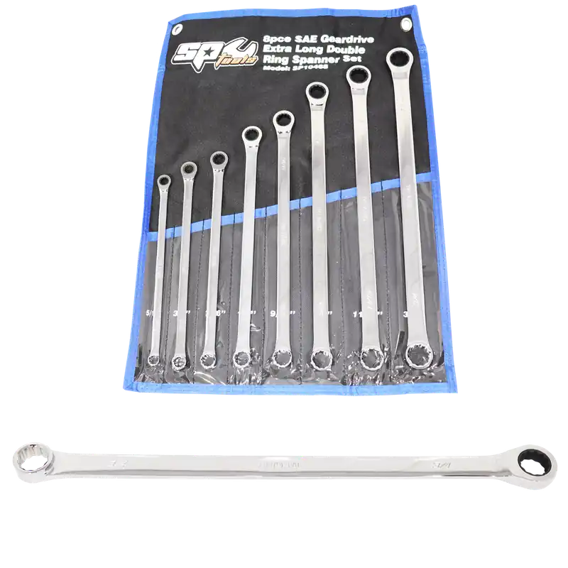 Bargain SP Tools Box Drive Double Ring Spanner Set – 0° Offset – Extra Long – SAE – 8pc