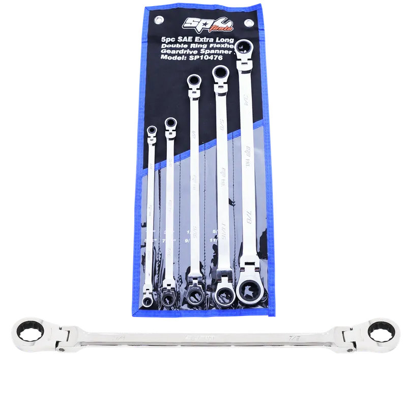 Best Price SP Tools Flex Head Double Gear Drive Ring Spanner Set – Extra Long – SAE 5pc