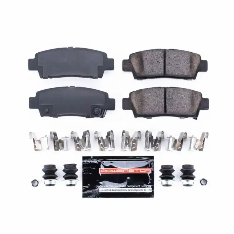 The PowerStop Z23 Evolution Sport ceramic brake pads are designed as an upgrade over stock brakes to reduce brake dust & eliminate noise, so you can ride in comfort. These brake pads are made with a low-dust ceramic formula, infused with carbon-fiber for increased braking power without sacrificing everyday drivability. The necessary stainless-steel hardware along with ceramic brake lubricant is included with the Z23 brake pads making it easier to complete your brake job. Use Z23 Evolution Sport brake pads to give your daily-driver the stopping power it deserves.