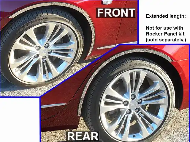 WHEEL WELL FENDER Accessory Trim has a very low profile against the vehicle. A rubber gasket edging is applied to the upper edge to provide added visibility and protection. Wheel Well Fender Accessory Trim is pre-formed for each model from a Highly Polished Stainless Steel, with a full 3M acrylic foam adhesive backing to enhance the look of your vehicle.
