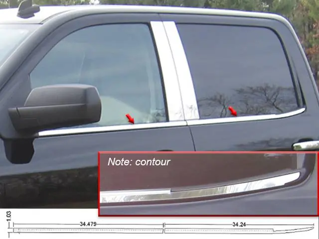 UPPER WINDOW and WINDOW SILL Accessory Trim is pre-formed for each vehicle model from a Highly Polished Stainless Steel, with a full coverage 3M acrylic foam adhesive backing to enhance the look of your vehicle. All of our stainless steel products are created from inception to packaging by our team of professionals, on location in Westford, Mass. Upper Window and Window Sill Trim is polished to a mirror shine, giving it a CHROME look. The polished surfaces are protected by a plastic film to be removed after installation.All of QAA’s Stainless Steel Trim products are easy to install with a ‘peel and stick’ application of the pre-applied 3M tape on every piece; no drilling, cutting or alterations are required. The bond is water tight and will last a lifetime.