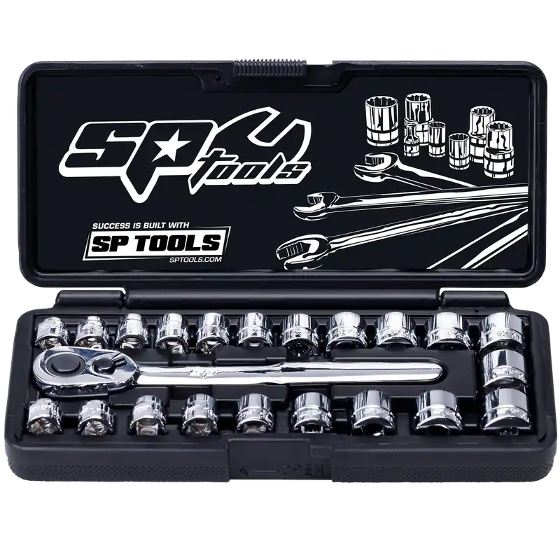 Clearance SP Tools 3/8″ Drive – Low Profile Stubby Socket Set – Metric/SAE – 12pt – 22pc