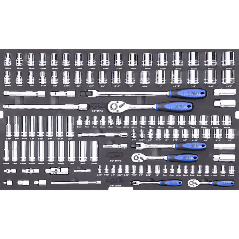 Discount SP Tools EVA Foam Tray Tool Kit – Sockets & Accessories – 122pc – Metric & SAE
