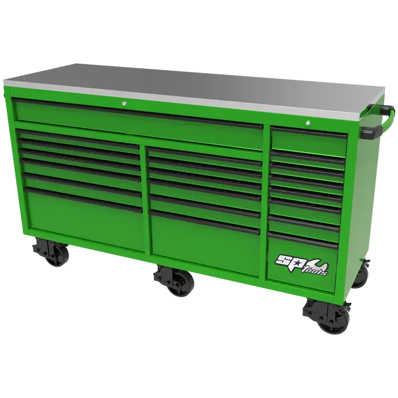 Exclusive SP Tools 73″ USA Sumo Series Roller Cabinet – 21 Drawer – Green/Black