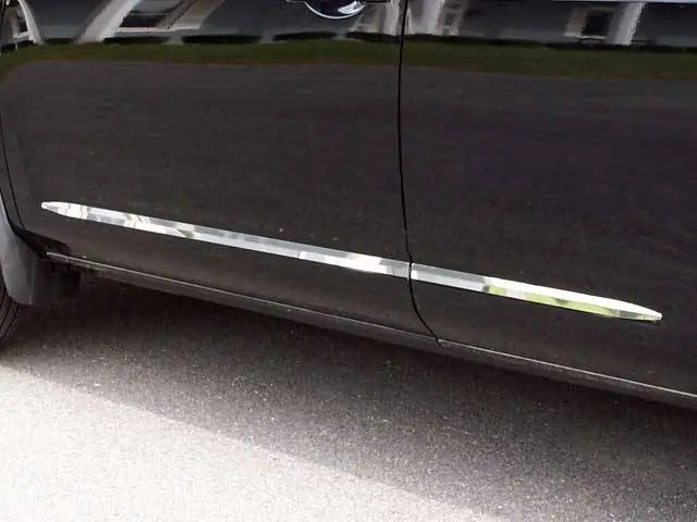MOLDING INSERT, and BODY ACCENT Accessory Trim is pre-formed for each vehicle model from a Highly Polished Stainless Steel, with a full 3M acrylic foam adhesive backing to enhance the look of your vehicle. All of QAA’s stainless steel products are created from inception to packaging by our team of professionals, on location in Westford, Mass. Body Molding Insert and Accent Accessory Trim is polished to a mirror shine, giving it a CHROME look. The polished surfaces are protected by a plastic film to be removed after installation.All of QAA’s Stainless Steel Trim products are easy to install with a ‘peel and stick’ application of the pre-applied 3M tape on every piece; no drilling, cutting or alterations are required. The bond is water tight and will last a lifetime.