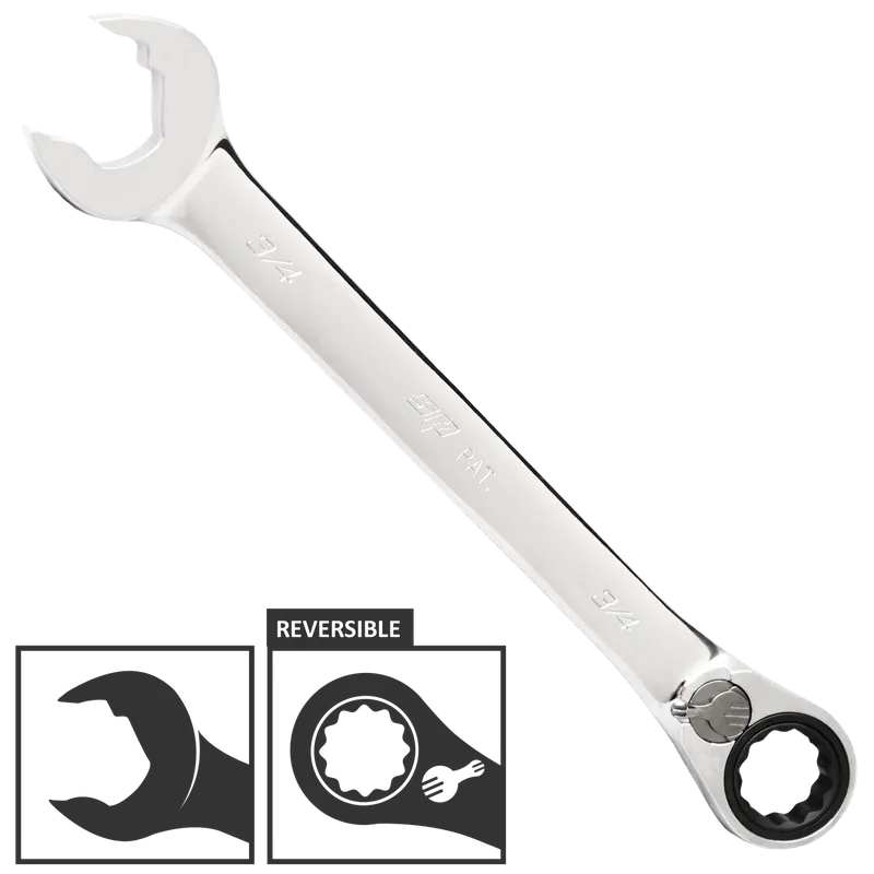 - Ratchet action on open end allows wrench to travel nuts without removing from fastener