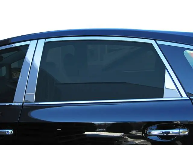 PILLAR POST Accessory Trim is designed to cover the vertical pillar sections between the windows on the vehicle doors. Pillar Post trim kits may include any number of pieces including central pillars, triangular corner pieces and strips that separate window segments. Please refer to the detailed product listing for more information. Quality Automotive’s Pillar Post Trim Sets are durable and guaranteed to last. They are pre-formed for each vehicle model from a Highly Polished Stainless Steel, with a full coverage 3M acrylic foam adhesive backing, and are made to enhance the look of your vehicle.All of QAA’s stainless steel is polished to a mirror shine, giving it a “CHROME” look. The polished surfaces are protected by a plastic film to be removed after installation. Pillar Post Trim is easy to install with a ‘peel and stick’ application of the pre-applied 3M tape on every piece; no drilling, cutting or alterations are required. The bond is water tight and will last a lifetime.