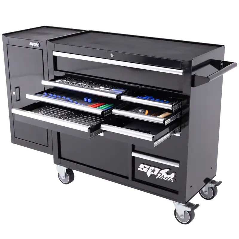 Last Chance SP Tools Custom Series Roll Cab Tool Kit with Side Cabinet – 238pc – Metric & SAE – Black/Chrome