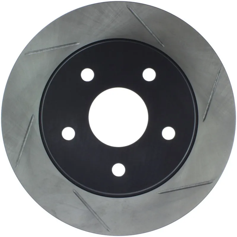 StopTech Slotted Sport Rotors are 1-piece direct replacement brake discs for factory brake systems and stock calipers that look great behind your wheels – and offer significantly improved braking performance. The unique slotting aids with heat and brake dust dispersal; prevents glazing of the pads; adds bite and improves wet and dry braking performance. Built to last; the black e-coating provides protection from corrosion and the high carbon metallurgy (in most applications) offers quieter operation; better crack resistance and increased performance.