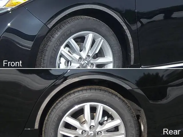 WHEEL WELL FENDER Accessory Trim has a very low profile against the vehicle. A rubber gasket edging is applied to the upper edge to provide added visibility and protection. Wheel Well Fender Accessory Trim is pre-formed for each model from a Highly Polished Stainless Steel, with a full 3M acrylic foam adhesive backing to enhance the look of your vehicle.