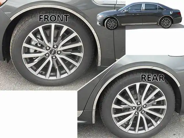 WHEEL WELL FENDER Accessory Trim has a very low profile against the vehicle. A rubber gasket edging is applied to the upper edge to provide added visibility and protection. Wheel Well Fender Accessory Trim is pre-formed for each model from a Highly Polished Stainless Steel, with a full 3M acrylic foam adhesive backing to enhance the look of your vehicle.