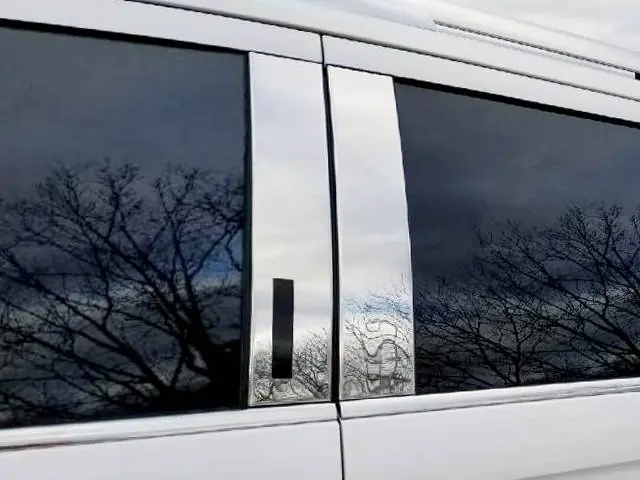 PILLAR POST Accessory Trim is designed to cover the vertical pillar sections between the windows on the vehicle doors. Pillar Post trim kits may include any number of pieces including central pillars, triangular corner pieces and strips that separate window segments. Please refer to the detailed product listing for more information. Quality Automotive’s Pillar Post Trim Sets are durable and guaranteed to last. They are pre-formed for each vehicle model from a Highly Polished Stainless Steel, with a full coverage 3M acrylic foam adhesive backing, and are made to enhance the look of your vehicle.All of QAA’s stainless steel is polished to a mirror shine, giving it a “CHROME” look. The polished surfaces are protected by a plastic film to be removed after installation. Pillar Post Trim is easy to install with a ‘peel and stick’ application of the pre-applied 3M tape on every piece; no drilling, cutting or alterations are required. The bond is water tight and will last a lifetime.
