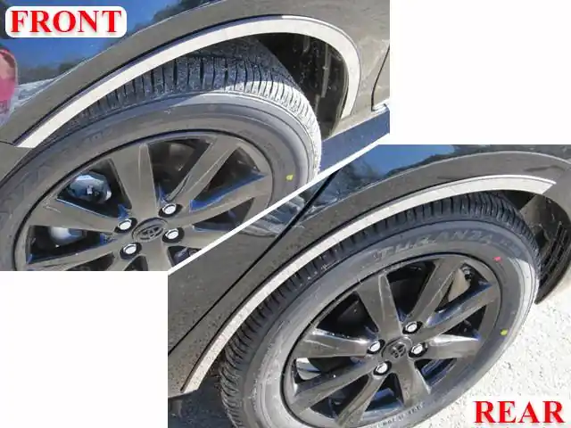 WHEEL WELL FENDER Accessory Trim has a very low profile against the vehicle. A rubber gasket edging is applied to the upper edge to provide added visibility and protection. Wheel Well Fender Accessory Trim is pre-formed for each model from a Highly Polished Stainless Steel, with a full 3M acrylic foam adhesive backing to enhance the look of your vehicle.