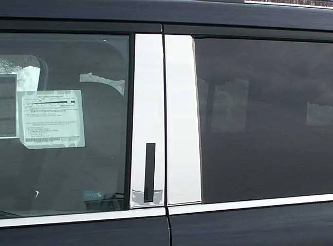 PILLAR POST Accessory Trim is designed to cover the vertical pillar sections between the windows on the vehicle doors. Pillar Post trim kits may include any number of pieces including central pillars, triangular corner pieces and strips that separate window segments. Please refer to the detailed product listing for more information. Quality Automotive’s Pillar Post Trim Sets are durable and guaranteed to last. They are pre-formed for each vehicle model from a Highly Polished Stainless Steel, with a full coverage 3M acrylic foam adhesive backing, and are made to enhance the look of your vehicle.All of QAA’s stainless steel is polished to a mirror shine, giving it a “CHROME” look. The polished surfaces are protected by a plastic film to be removed after installation. Pillar Post Trim is easy to install with a ‘peel and stick’ application of the pre-applied 3M tape on every piece; no drilling, cutting or alterations are required. The bond is water tight and will last a lifetime.