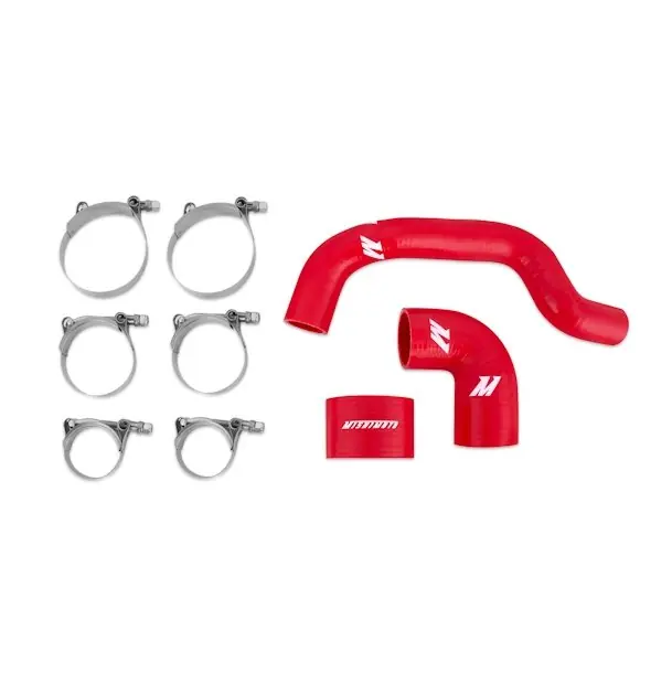 The kit includes three silicone hoses reinforced with heat-resistant fibers, capable of withstanding temperatures up to 330°F and increased boost pressure. Their smooth internal surfaces optimize airflow to the intercooler, enhancing efficiency and reliability. Four T-bolt clamps in various sizes provide a secure, OEM-replacement fit that simplifies installation and prevents leaks during high boost operation.
