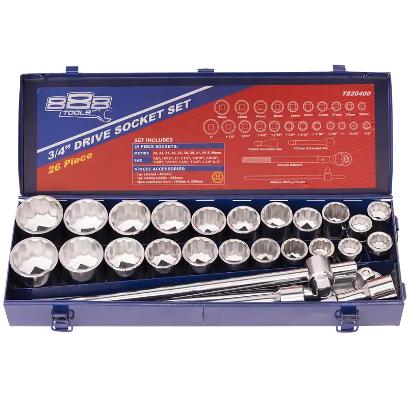 Money Back Guarantee SP Tools 3/4″ Drive Socket Set – 888 Series – Jumbo Sizes – Metric/SAE – 12pt – 26pc