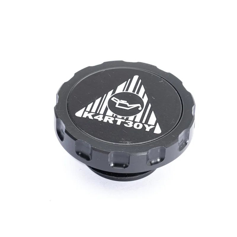 Made from durable Delrin material, the Kartboy Oil Cap V2 is built to withstand high temperatures and daily use. It features a sleek black finish with your choice of red or black anodized center logos, allowing you to customize your engine bay’s appearance. The cap also comes equipped with a new O-ring for a secure, leak-free fit.