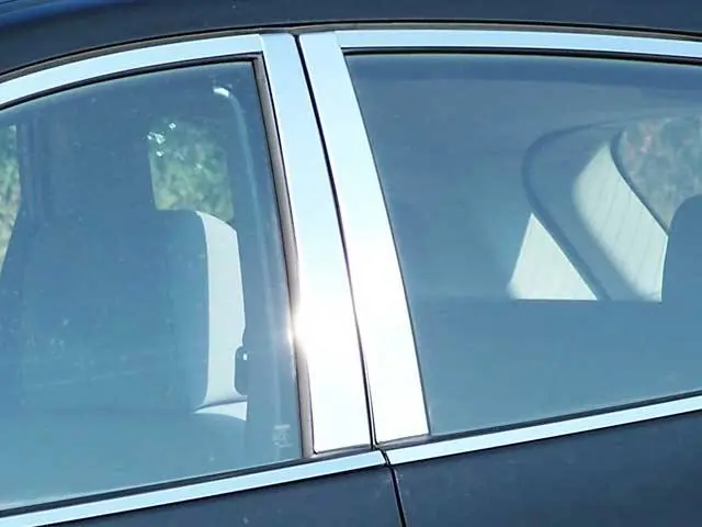 PILLAR POST Accessory Trim is designed to cover the vertical pillar sections between the windows on the vehicle doors. Pillar Post trim kits may include any number of pieces including central pillars, triangular corner pieces and strips that separate window segments. Please refer to the detailed product listing for more information. Quality Automotive’s Pillar Post Trim Sets are durable and guaranteed to last. They are pre-formed for each vehicle model from a Highly Polished Stainless Steel, with a full coverage 3M acrylic foam adhesive backing, and are made to enhance the look of your vehicle.All of QAA’s stainless steel is polished to a mirror shine, giving it a “CHROME” look. The polished surfaces are protected by a plastic film to be removed after installation. Pillar Post Trim is easy to install with a ‘peel and stick’ application of the pre-applied 3M tape on every piece; no drilling, cutting or alterations are required. The bond is water tight and will last a lifetime.