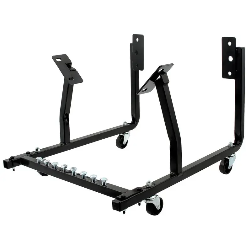 Proflow’s high-quality roll-about engine cradles are made from 14 gauge square steel tubing and have a black powder coated finish. They can be disassembled for storage when not in use and include Grade 5 fasteners and 3 caster wheels. Max weight limit is 1,000 pounds.