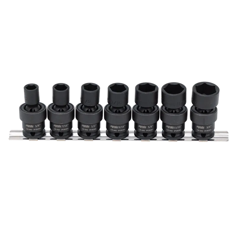 - 3/8, 7/16, 1/2, 9/16, 5/8, 11/16 & 3/4″ Swivel Impact Sockets