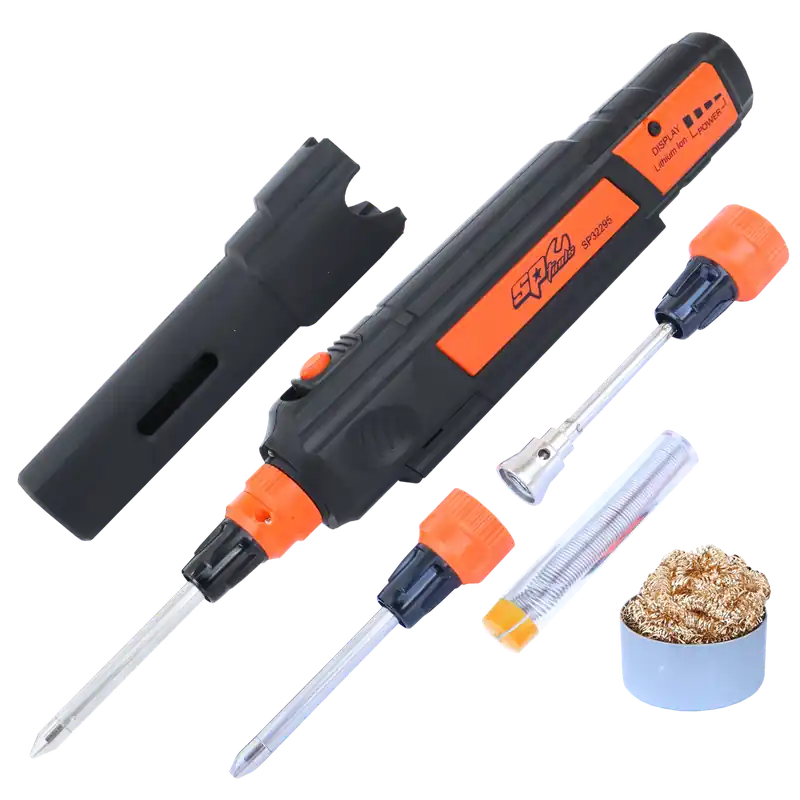 - Professional rechargeable li-ion cordless soldering iron with 3 interchangeable tips to suit most soldering applications