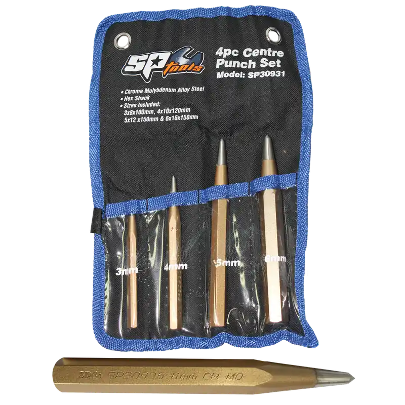 - Designed to make an indentation in metal, plastic or wood prior to drilling to prevent the bit skating off target