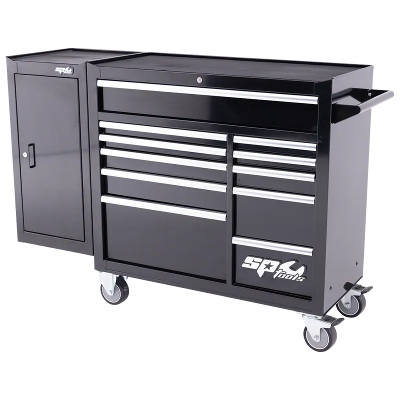 SP Tools Custom Series Roller Cabinet with Side Cabinet – 11 Drawer – Black/Chrome Mega Sale