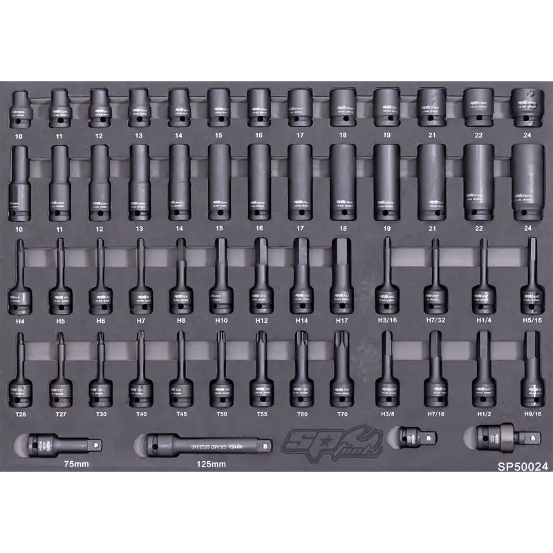 Home / Tools / SP Tools EVA Foam Tray Tool Kit – 1/2″ Drive Impact Sockets & Accessories – 56pc – Metric & SAE Exclusive