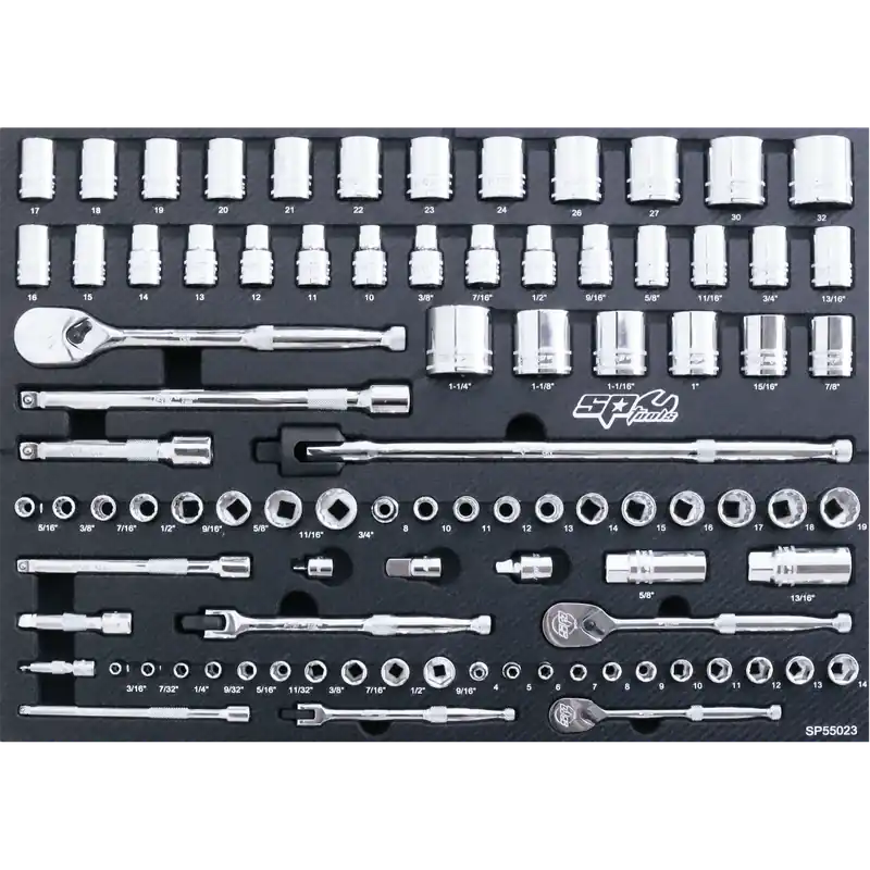 SP Tools EVA Foam Tray Tool Kit – Sockets & Accessories – 90pc – Metric & SAE Time-Limited