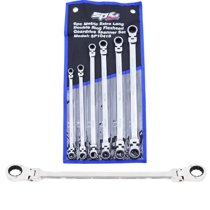 SP Tools Flex Head Double Gear Drive Ring Spanner Set – Extra Long – Metric 6pc Free Shipping