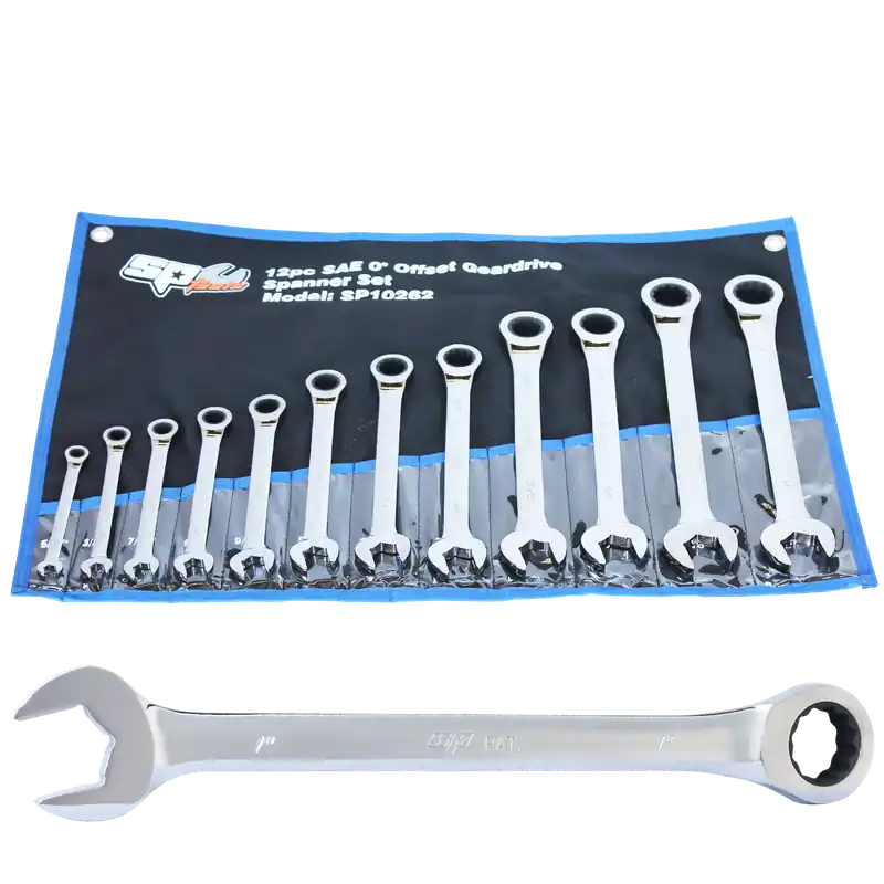 SP Tools Gear Drive ROE Quad Drive Spanner Set – 0° Offset – SAE – 12pc Deal