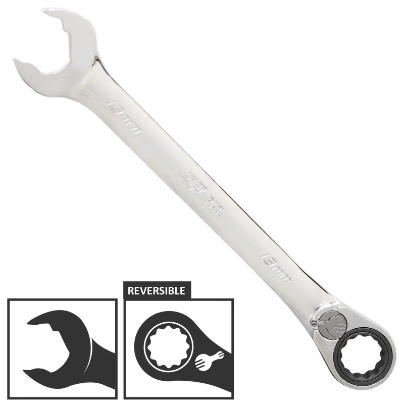 - Ratchet action on open end allows wrench to travel nuts without removing from fastener