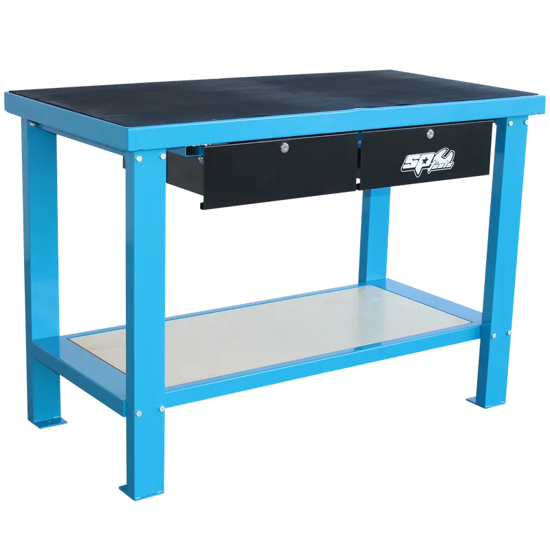 SP Tools Heavy Duty Workshop Bench- 2 Drawer – Blue/Black Limited Offer