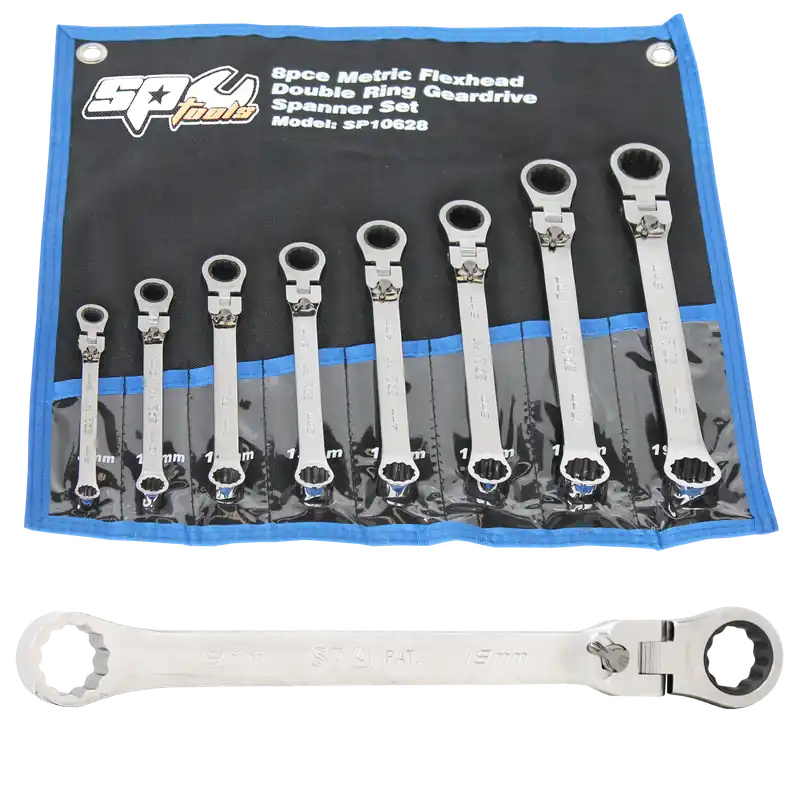 SP Tools Locking Flex Head Gear Drive Box Double Ring Spanner Set – Metric – 8pc Crafted