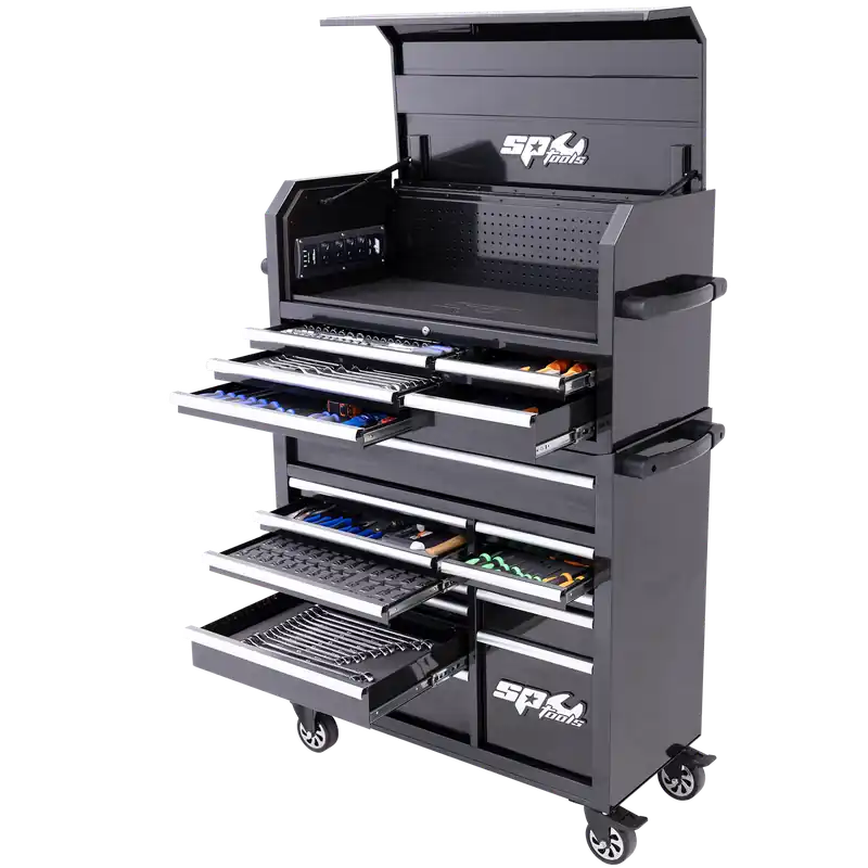 SP Tools Sumo Series Power Hutch Tool Kit Combo – 550pc – Metric & SAE – Black/Crome – Plus Extra EVA Foam Trays Markdown