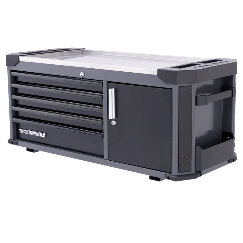 SP Tools Tech Series Tool Box with Power Tool Cupboard and Built-in Power Board – 5 Drawer – Diamond Black Price Cut