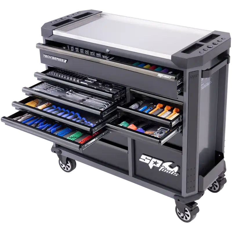 SP Tools Tech Series – Trade Technician Roll Cab Tool Kit – 386pc – Metric Only – Diamond Black Worldwide Shipping