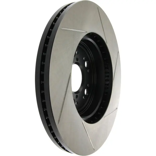 StopTech Slotted Sport Rotors are 1-piece direct replacement brake discs for factory brake systems and stock calipers that look great behind your wheels – and offer significantly improved braking performance. The unique slotting aids with heat and brake dust dispersal; prevents glazing of the pads; adds bite and improves wet and dry braking performance. Built to last; the black e-coating provides protection from corrosion and the high carbon metallurgy (in most applications) offers quieter operation; better crack resistance and increased performance.