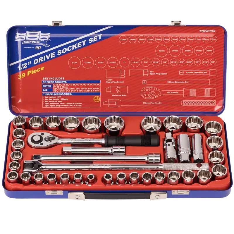 Warranty Included SP Tools 1/2″ Drive Socket Set – 888 Series – Metric/SAE – 12pt – 39pc