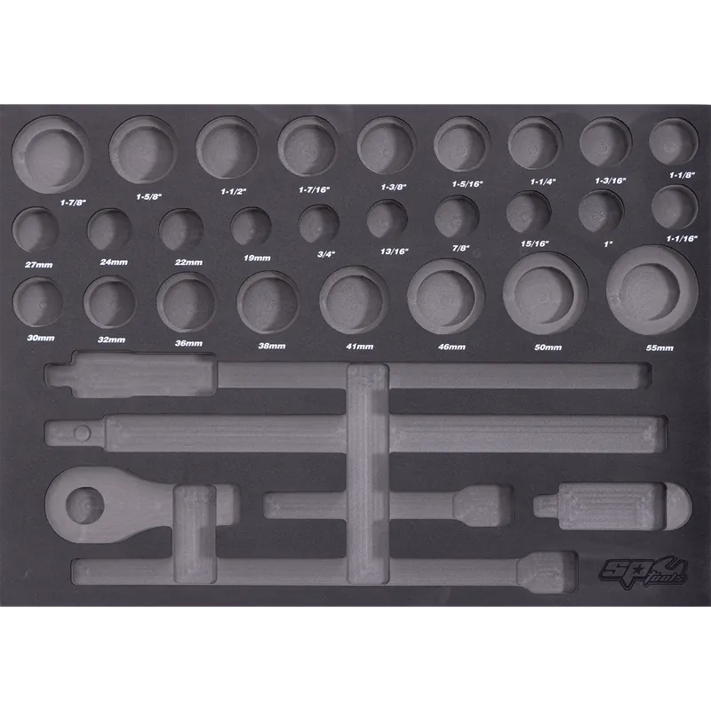 Worldwide Shipping SP Tools EVA Foam Tray – Suits Sockets & Accessories – Metric & SAE – 32pc