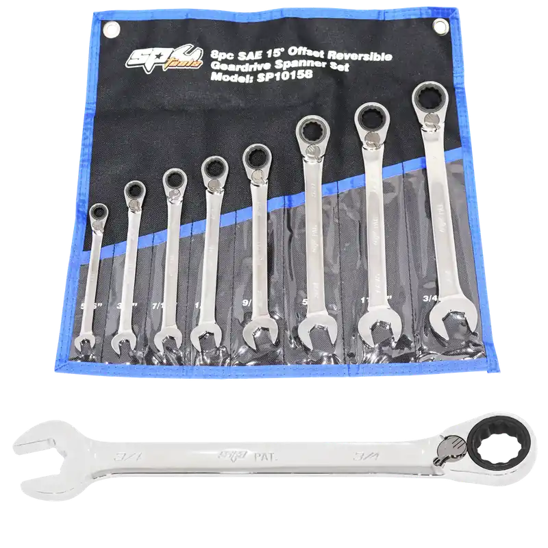 Worldwide Shipping SP Tools Gear Drive ROE Quad Drive Spanner Set – 15° Offset – SAE – 8pc